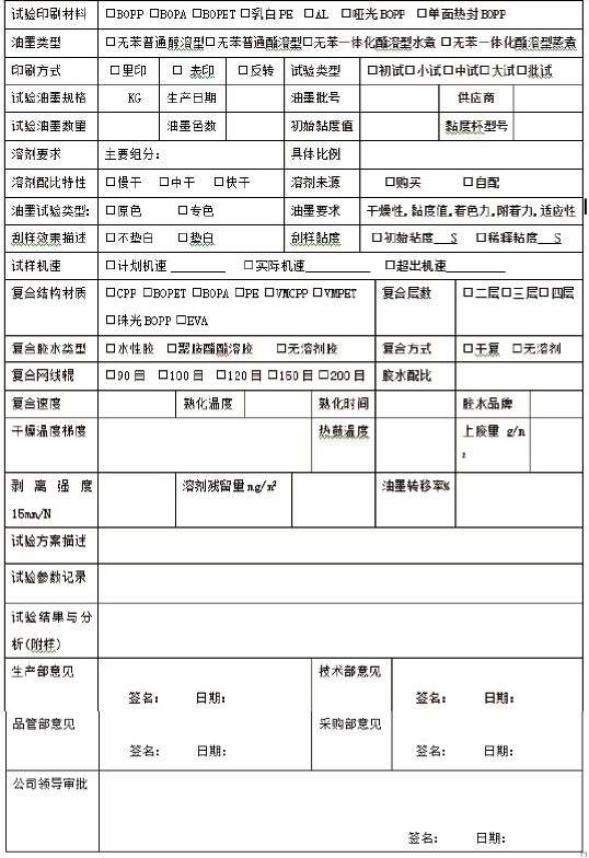 表四:軟包裝企業(yè)油墨試樣申請(qǐng)單(如下表)