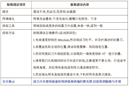 版輥清潔與保養(yǎng)非常重要,只有一絲不茍地做好版輥的清潔與保養(yǎng)工作,才能對后續(xù)的印刷質(zhì)量與版輥的壽命有保障。故而企業(yè)應(yīng)該建立標準的版輥清潔標準與保養(yǎng)工作流程,如表一。