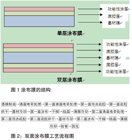 涂布膜的工藝路線,以雙面涂布為例,見圖2。