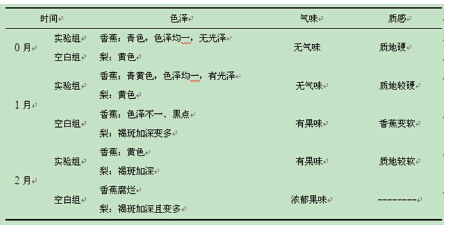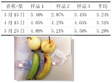 本研究將梨與香蕉共放的重要意義還在于探討香蕉自身產(chǎn)生的乙烯對(duì)梨保鮮效果的影響,希望能提供一種保鮮、銷售一體化的新方法。