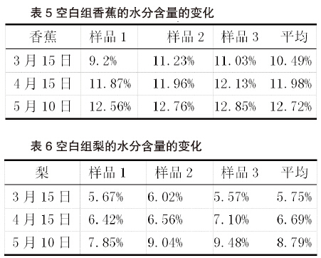 2、梨、香蕉水分含量的變化