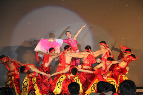 為了迎接新一年的到來(lái),及歡迎各位嘉賓的光臨,當(dāng)晚能歌善舞的同事們還精心策劃了豐富多彩的節(jié)目。在各部門(mén)挑選的12名壯實(shí)漢子在馬婷的帶領(lǐng)下呈獻(xiàn)的大型民族舞腰鼓舞為晚會(huì)表演環(huán)節(jié)拉開(kāi)了序幕,舞蹈的背景音樂(lè)是宋祖英的《太陽(yáng)鼓》,其中所唱的“背著太陽(yáng)播種,扛起太陽(yáng)收獲”,非常形象地表現(xiàn)出江門(mén)東洋人的工作態(tài)度——朝氣蓬勃,積極向上,也寓意著江門(mén)東洋2015年將紅紅火火,豐收喜悅。激情四射的舞蹈后,川島大幸董事長(zhǎng)和梁錦球總經(jīng)理為我們帶來(lái)經(jīng)典日文歌曲《星》,讓我們?cè)诟杪曋懈惺苄强盏膹V袤、璀璨和浪漫。緊接著,葉維娜、黃文智、易毅三位美女俊男共同演繹了節(jié)奏輕快的英文歌曲《lemon tree》,使整個(gè)宴會(huì)廳頓時(shí)充滿(mǎn)了青春的氣息。由8對(duì)帥哥美女共同呈現(xiàn)的慢三交誼舞《美酒加咖啡》,華美的背景畫(huà)面,優(yōu)雅的舞姿,現(xiàn)場(chǎng)仿佛變成了朦朧浪漫的舞池,一對(duì)對(duì)舞者翩翩起舞,讓人陶醉不已。壓軸節(jié)目是銷(xiāo)售部的精英們充滿(mǎn)豪情壯志演繹的大合唱《紅日》,他們希望通過(guò)歌聲表達(dá)新的一年再創(chuàng)輝煌業(yè)績(jī)的強(qiáng)烈愿望,雄壯的歌聲將現(xiàn)場(chǎng)氣氛推上一個(gè)新高潮,臺(tái)下的觀眾們情不自禁拍掌唱和,到最后的高潮部分,幾乎全場(chǎng)員工都站立起來(lái)一邊大聲演唱一邊揮手歡呼,場(chǎng)面非常震撼!