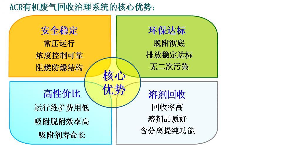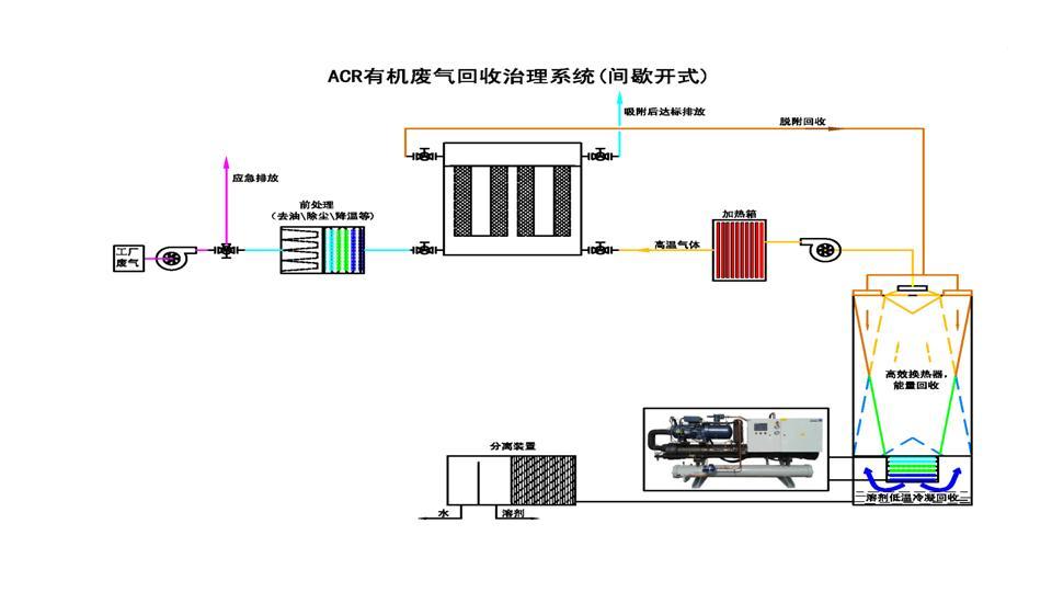 針對(duì)大風(fēng)量、中低濃度的有機(jī)廢氣的處理采用ACR有機(jī)廢氣回收治理系統(tǒng)